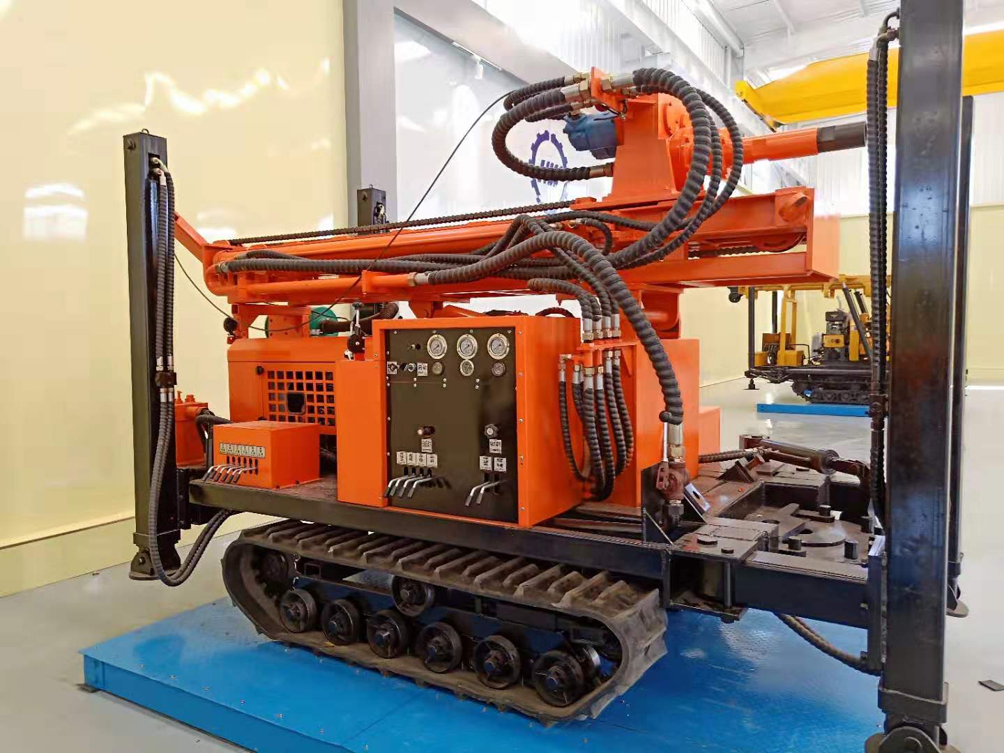 产品说明:潜孔钻机主要适用于山地、黄土塬、丘陵、戈壁、农田等复杂地表的勘探钻井。钻机采用全液压驱动,山地地区主要采用空气钻井和空气震击钻井。在其它地区,更换钻具可实现螺旋钻井,增加泥浆泵可实现泥浆钻井